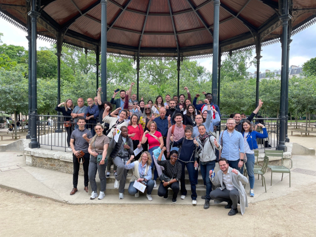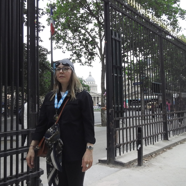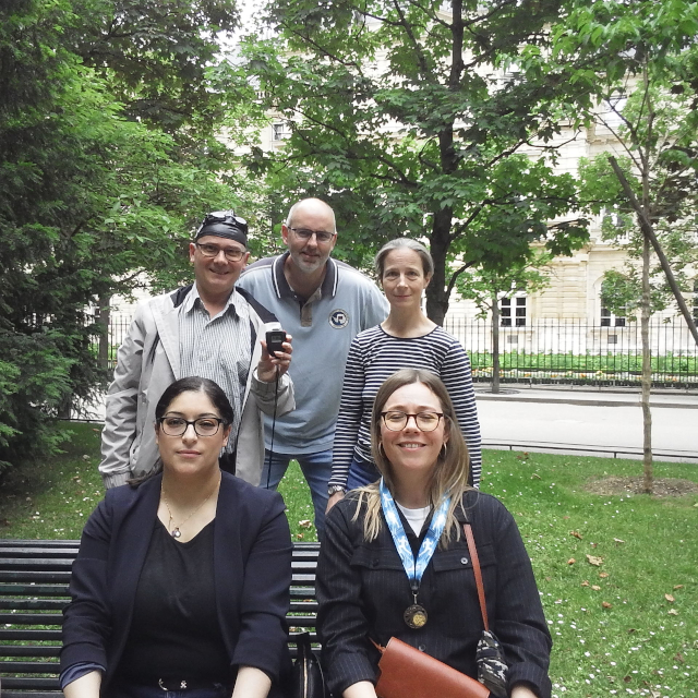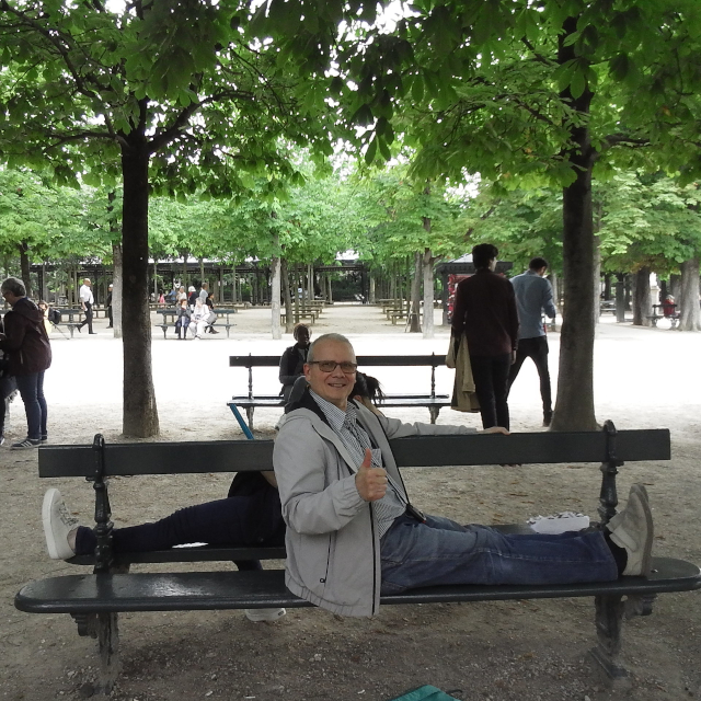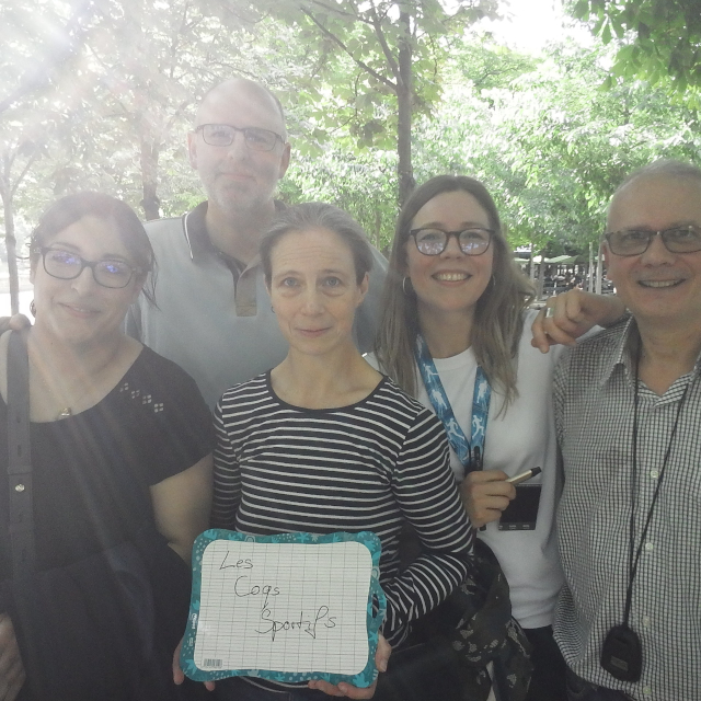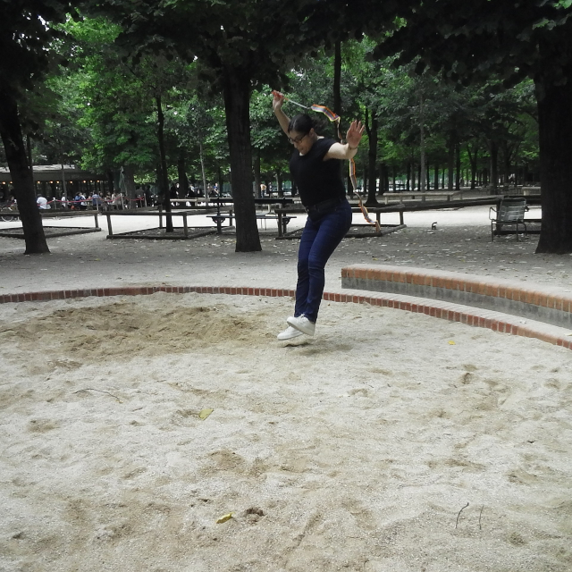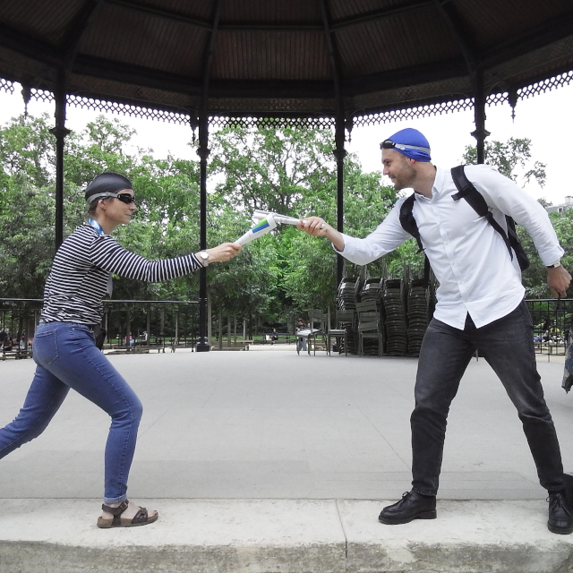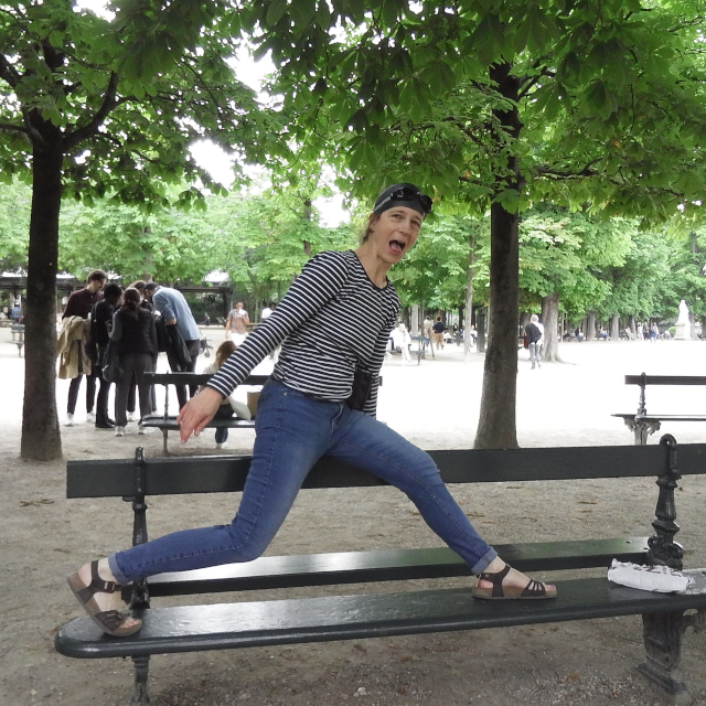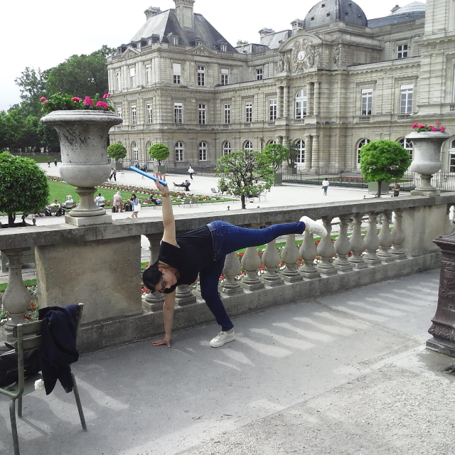 links Charlie beim Startsprung ins Medicis-Becken - rechts Aurélie vorm Panthéon