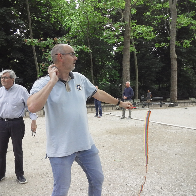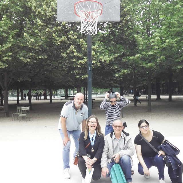 links Arnaud beim Kugelstoßen - Mitte Arnaud und ich bei einer alten Sportart - rechts: A Team with a Message