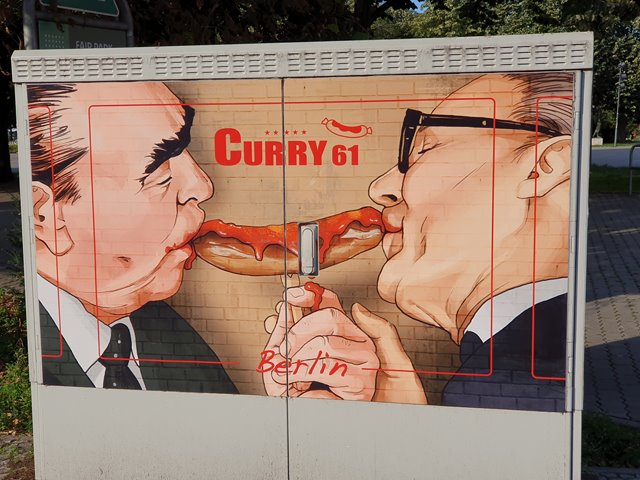 nochmal die BVG in Regenbogenfarben - Werbung für Currywurst - der Berliner Dom