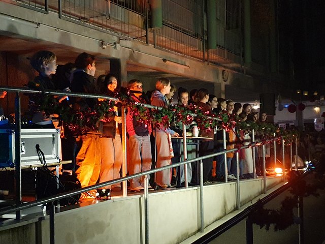 die Schüler singen Weihnachtslieder - Philip am Soundboard