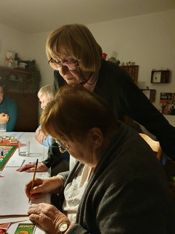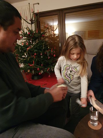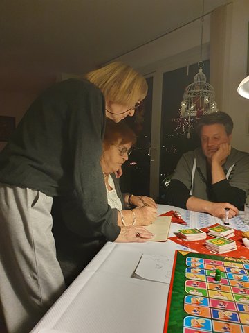 Weihnachtskaffee bei Herma mit Karin, Peter, Dennis, Klaudia und Mina - wir spielen Activity!