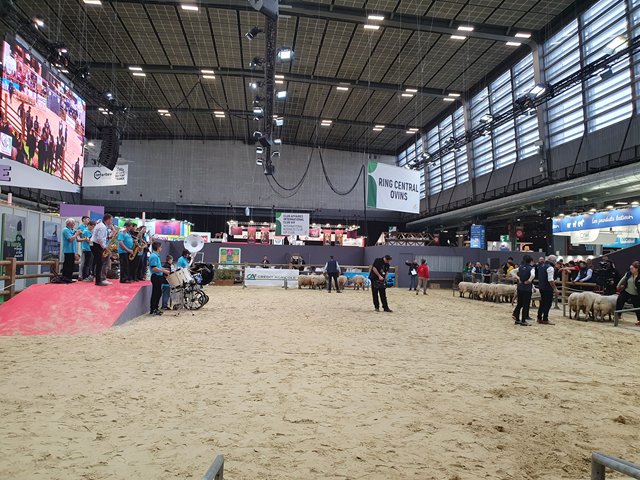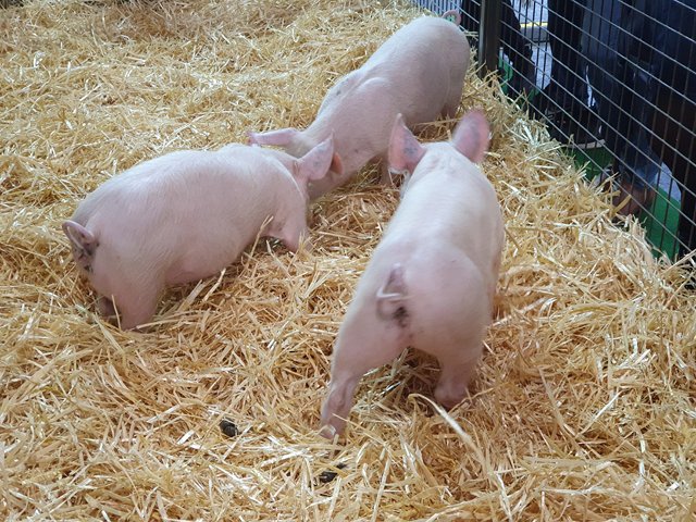 le ring des ovins - impossible de prendre en photo la projection de Biguine (qui aurait dû être la star du Salon) - trois petits cochons